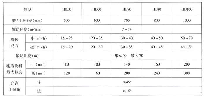 二、HB型鏈板式輸送機(jī)技術(shù)參數(shù)