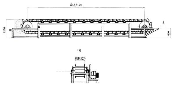 2、動(dòng)力裝置在鏈斗(板)機(jī)頭部、左、右裝可根據(jù)用戶要求變動(dòng)。